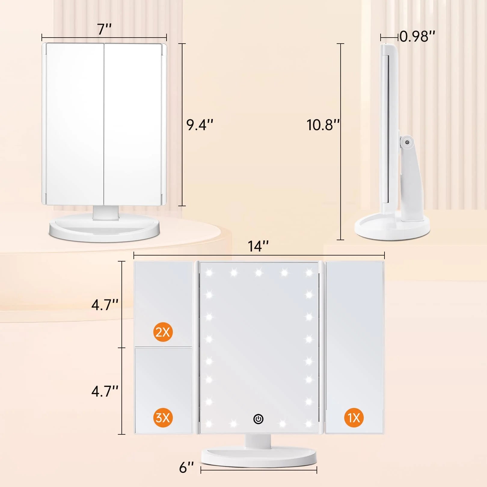 Tri-Fold Makeup Mirror with Lights, 2X/3X Magnifying Makeup Mirror, Touch Control Vanity Mirror, Usb/Battery Powered Table Mirrors